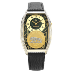 This stainless steel watch has been created by using a particular Quarter Rupee Coin from the year 1947, bearing a Tiger on the face. The Walking tiger (Baagh in Hindi) has close resemblance with the Make In India Logo. This Quarter Rupee Coin holds its significance as it was the last coin minted under the British Rule. It was minted only in the years 1946 (second half) and 1947.