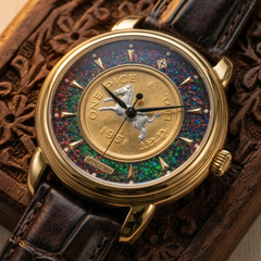 The watch face is adorned with a never used before Opal stone and Aventurine Stone Dial and Black mother-of-pearl dial, adding an element of elegance and sophistication. The luminous quality of the mother-of-pearl complements the vintage charm of the One Pice coin, creating a harmonious blend of history and artistry. The sleek, silver-tone case and black leather strap enhance its timeless appeal, making it a versatile accessory for any occasion.