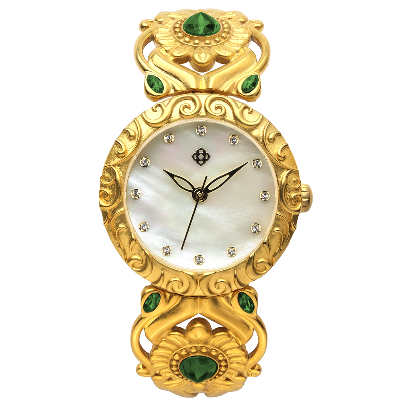 Blossom Radiance is a masterpiece designed to evoke the grandeur and elegance of a royal event. Its intricate design is achieved through the use of the centuries-old jewelry technique of filigree, where skilled artisans meticulously weave fine threads of precious metal to create delicate and ornate patterns. The watch embodies a timeless elegance, combining traditional craftsmanship with modern sophistication. Every detail of Blossom Radiance reflects the opulence and grace associated with regal occasions, making it a stunning tribute to heritage and luxury.