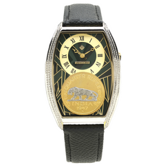 This stainless steel watch has been created by using a particular Quarter Rupee Coin from the year 1947, bearing a Tiger on the face. The Walking tiger (Baagh in Hindi) has close resemblance with the Make In India Logo. This Quarter Rupee Coin holds its significance as it was the last coin minted under the British Rule. It was minted only in the years 1946 (second half) and 1947.