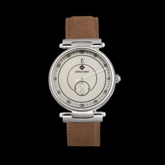 Instead of the hour hand sweeping the dial like a traditional timepiece, a disc hidden behind a tiny window on the dial 'jumps' to accurately display the hour when its minute hand reaches 12 instead (60 minutes). A 42-hour power reserve is provided by a modified automatic movement.