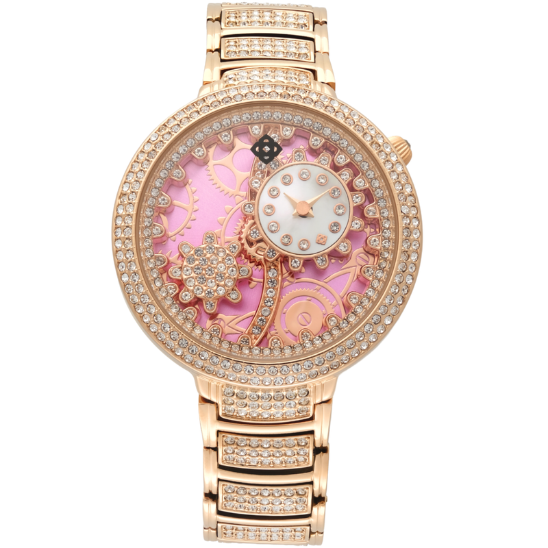 Available in Steel, Gold, and Rose Gold finishes, the watch is powered by a Miyota Quartz movement for precise timekeeping. American diamonds enhance their refined sparkle, while the 36mm case size ensures a perfect, comfortable fit on a woman’s wrist.