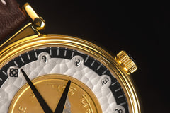 The Pice Heritage Watch by Jaipur Watch Company is a distinctive luxury timepiece that blends history, craftsmanship, and modern design. At its core, it features a genuine ‘One-Pice coin (1950–1955)’, seated on a dial inspired by India's traditional hand-hammered brass craft, offering a unique and artistic texture. The dial also showcases Devanagari script numerals, adding an extra layer of historical and cultural significance to the timepiece.