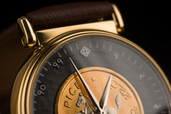 The Pice Heritage Watch by Jaipur Watch Company is a distinctive luxury timepiece that blends history, craftsmanship, and modern design. At its core, it features a genuine ‘One-Pice coin (1950–1955)’, seated on a dial inspired by India's traditional hand-hammered brass craft, offering a unique and artistic texture. The dial also showcases Devanagari script numerals, adding an extra layer of historical and cultural significance to the timepiece.