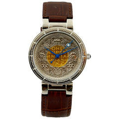 The Watch has a Sapphire Crystal and the winder has a Sapphire Stone. The Bezel of the watch bears a resemblance to traditional Indian design.