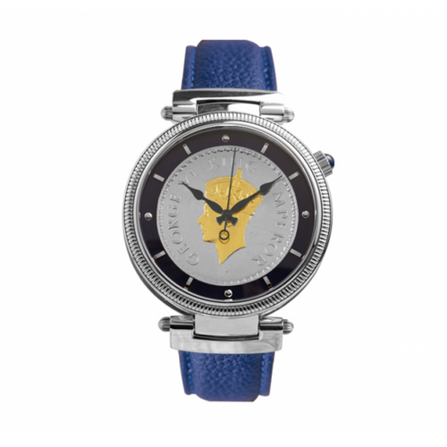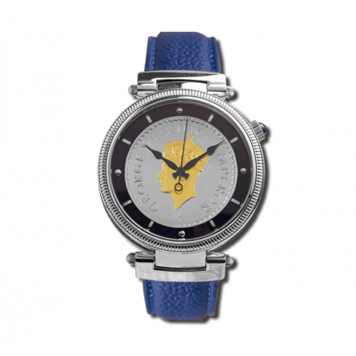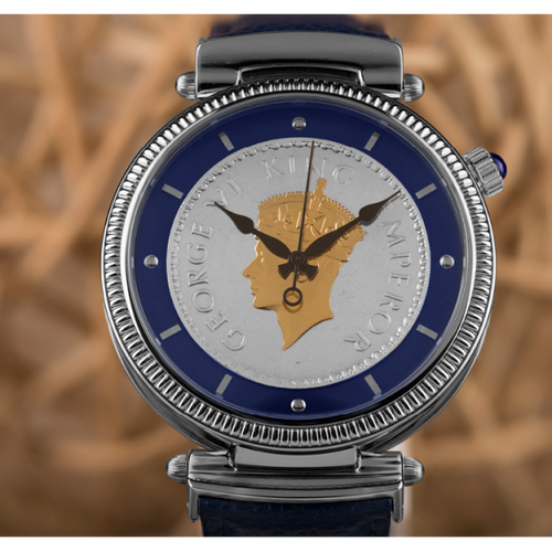 King George VI Silver Coin as the Dial, Automatic Movement, Limited Edition, Serial Number Marked, Front and Back Sapphire Glass, Precious Stone on the Crown, Butterfly Clasp on the Leather Strap.