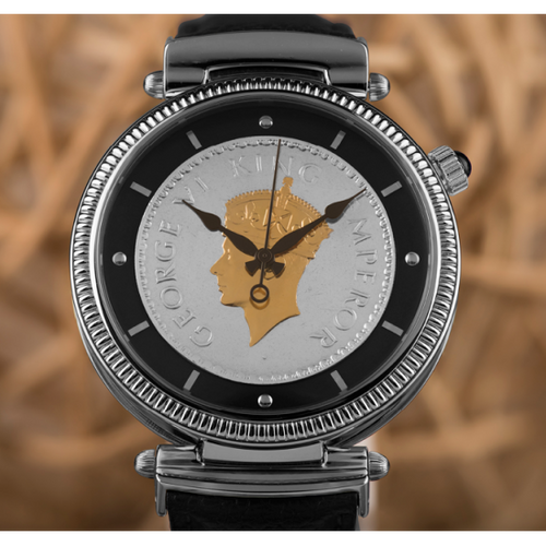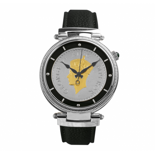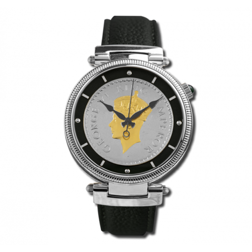 King George VI Silver Coin as the Dial, Automatic Movement, Limited Edition, Serial Number Marked, Front and Back Sapphire Glass, Precious Stone on the Crown, Butterfly Clasp on the Leather Strap.