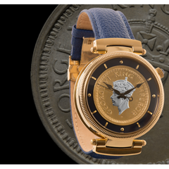 King George VI Silver Coin as the Dial, Automatic Movement, Limited Edition, Serial Number Marked, Front and Back Sapphire Glass, Precious Stone on the Crown, Butterfly Clasp on the Leather Strap.
