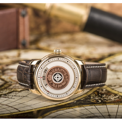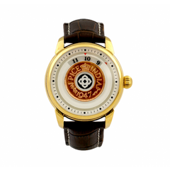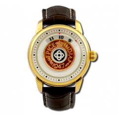 Housing a Swiss Machine (ISA Cal 2334:1035) the watch is developed on a unique moving disc mechanism, 43 MM in Size and having the One Paisa Coin (The Lowest Denomination of British India Coinage) in centre the Discs Move giving it a unique look. The Collection is Serial numbered from 1-500, each watch having its unique identity. Available in Black Strap with Steel Finish Case and Brown Strap with Gold Polished Case.