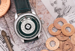 Housing a Swiss Machine (Ronda 702) the watch is developed on a unique moving disc mechanism, 43 MM in Size and having the One Paisa Coin (The Lowest Denomination of British India Coinage) on the dial. This variant is Serial numbered from 1-25, each watch having its unique identity.