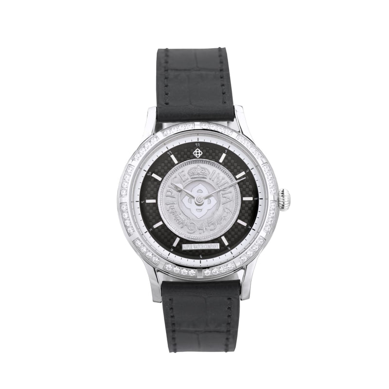 The One Pice Coin Watch, bears the King George VI One Paisa Coin (The Lowest Denomination of British India Coinage) in center, limited to 100 units. A Carbon Fibre Dial with Hindi Numeral Markings and Metal Indicators surrounds the coin. The timepiece features a genuine leather strap along with a gold finish case. The female watch case is embedded with original Swarovski Crystal making for a sophisticated heirloom.