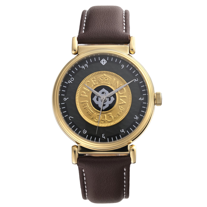 The Pice Heritage Watch by Jaipur Watch Company is a distinctive luxury timepiece that blends history, craftsmanship, and modern design. At its core, it features a genuine ‘One-Pice coin (1943–1947)’, seated on a dial inspired by India's traditional hand-hammered brass craft, offering a unique and artistic texture. The dial also showcases Devanagari script numerals, adding an extra layer of historical and cultural significance to the timepiece.