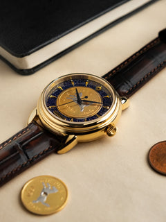 The One Pice coin, with its iconic depiction of a galloping horse, symbolizes India's leap into independence and the dawn of a new era. It represents the strength, freedom, and progress that defined the nation during its early years of sovereignty. This historical coin, encased within the watch, serves as a poignant reminder of India's journey and its enduring legacy.