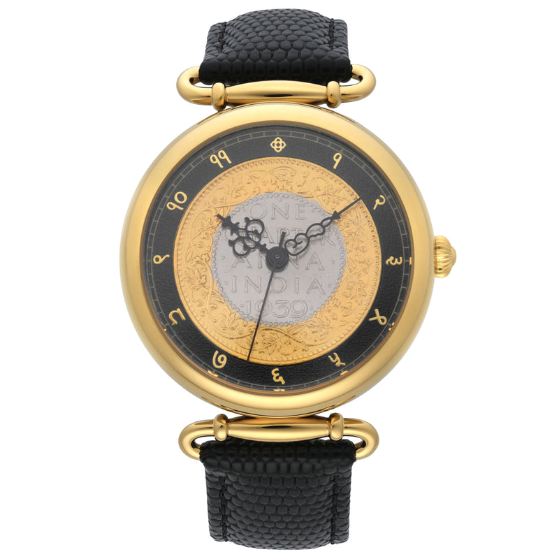 At the heart of this timepiece lies an authentic Quarter Anna coin from 1938–1940 extremely limited period currency, carefully embedded into the dial, transforming each watch into a wearable relic of history. With its vintage aura and historic significance, it offers collectors and enthusiasts alike a chance to own a slice of India’s heritage.