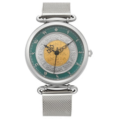 Elegantly designed, the watch is available in Royal Green and Classic Black dials, adorned with Devanagari numerals and vintage-style hands that echo a bygone era. The 39mm stainless steel case is paired with your choice of India's first adjustable mesh bracelet or a leather strap, delivering both timeless style and modern comfort.